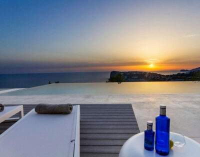Auf mehreren Ebenen verteilen sich die hochwertig möblierten Terrassen – ausgerichtet zur Meer- und Hafenseite. Ob im gemütlichen Chill-Out Bereich, an der überdachten Speisetafel oder im Pool oder OutdoorJacuzzi, hier finden Gäste zu jeder Tageszeit den perfekten Ort zur Entspannung und zum geselligen Beisammen-Sitzen bei atemberaubendem Blick über den idyllischen Naturhafen von Port de Andratx.