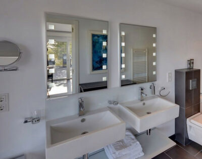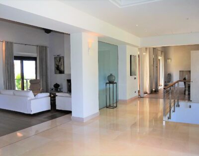 Die gesamte Inneneinrichtung ist geprägt von hellen Farben und qualitativ hochwertigsten Materialien. Die technische Ausstattung ist auf dem neusten Stand und lässt keine Wünsche offen. Eine ultra-moderne Americanische Küche, ein Spa Bereich mit Fitnessraum und Sauna, ein beheizbarer Pool und Outdoor-Jacuzzi, sowie eigene Räumlichkeiten für Besucher und Personal sind weitere Highlights dieser Villa.